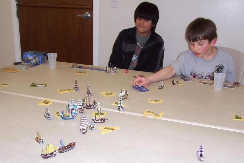 Zach had used Mike's distraction to fill his holds with another load of treasure. Antonio had taken a turn to repair his Le Courageux, then set sail for the last of the rich central islands that hadn't been pillaged yet. If he hadn't taken the turn for repairs, he would have just made it, but his ship touched the shore just as the game's time ran out.