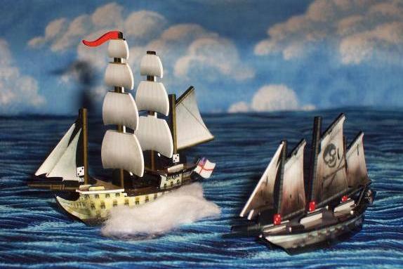 One of His Majesty's finest, HMS Burma, gives a scurvy pirate what-for! The pirates know they'll hang if they surrender, so they are well-motivated to fight back and win. But whoever fires first has a big advantage. |
