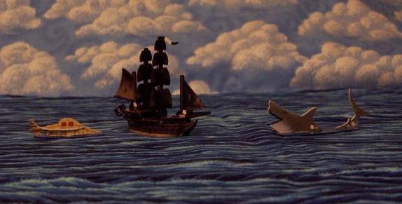 A cast-iron mercenary submarine tries to ram the formidable pirate ship Darkhawk II. A huge shark watches with interest; no matter who loses, he knows he'll win. |