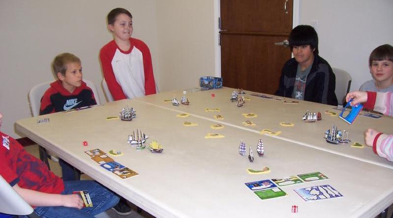 Most of the players were talking about alliances even before the fleets were fully set out. Then Cadet-Captain Mike offered an "Sch" alliance to anyone else who had the letters "sch" in their last name, like he did. Jake and Aimee quickly accepted; no one else was qualified. Jake then realized that he'd allied himself with every admiral on the water, and he'd have to break a deal with someone if his fighting ships were to do any fighting. Such is life on the Spanish Main.