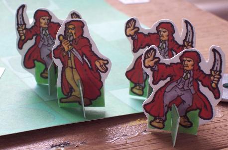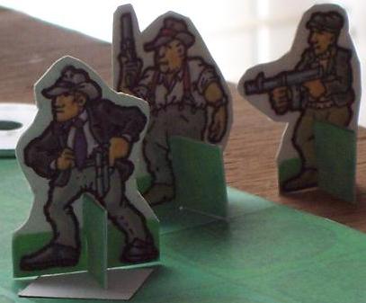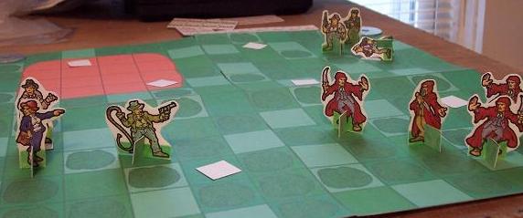 This was a sample, solitaire battle with 25-point factions on a 1x1' Jungle map. Its purpose was to test out my new "To a Pulp" rules. I used free downloadable paper figures on my own simplistic scenery. To maintain some semblance of order, each faction will obey the following rules: