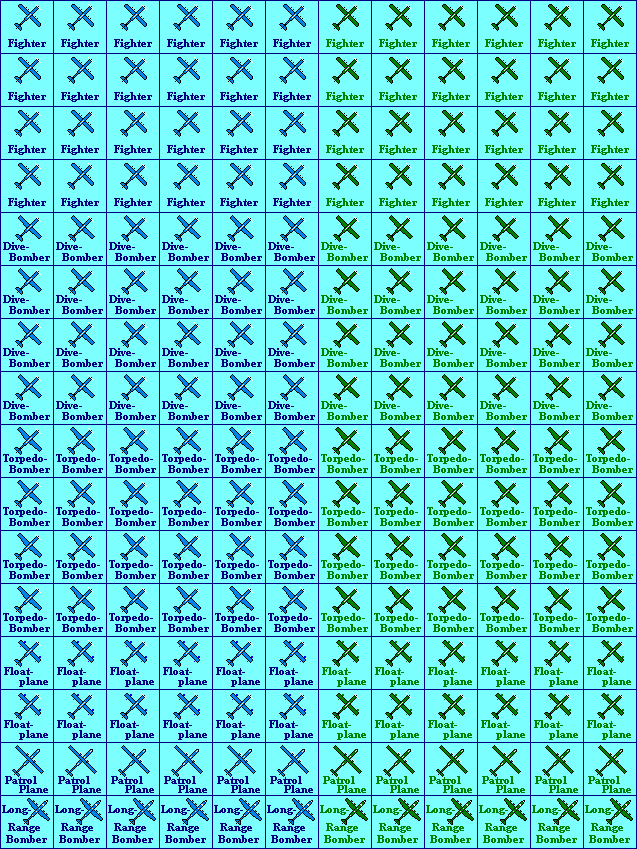 | Airplanes | Carrier-based and land-based planes (for 2 players) | 96+96 |