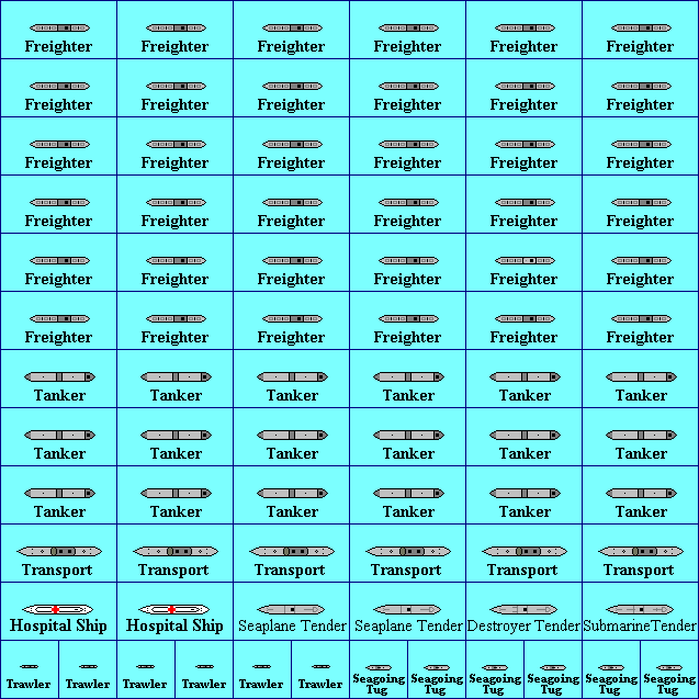 | Merchant Ships | Semi-generic freighters, tankers, troop transports, etc. | 78 |