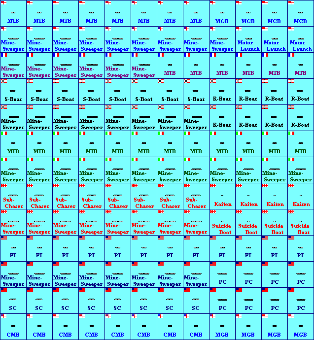 | Coastal Craft | Semi-generic MTB's, minesweepers, and sub-chasers (for 6 navies) | 156 |