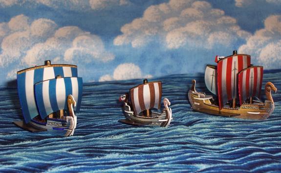 A Viking fleet spreads its sails to the chill northern winds. Whoever hopes to engage them in battle had better not let them take the first shot. |
