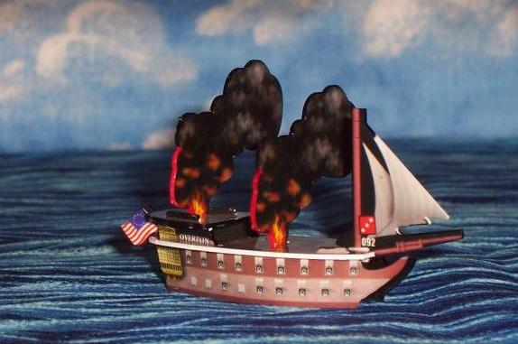 The odds of the USS Overton surviving two firepot masts are vanishingly small. Did she make it? See the battle report for July 7, 2007 for an epic story of the sea. |